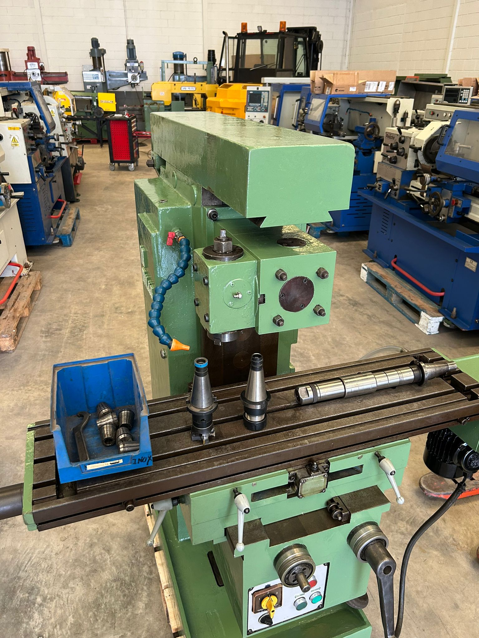 Equipada con bomba de taladrina, portapinzas y pinzas, luneta y barra portafresas.