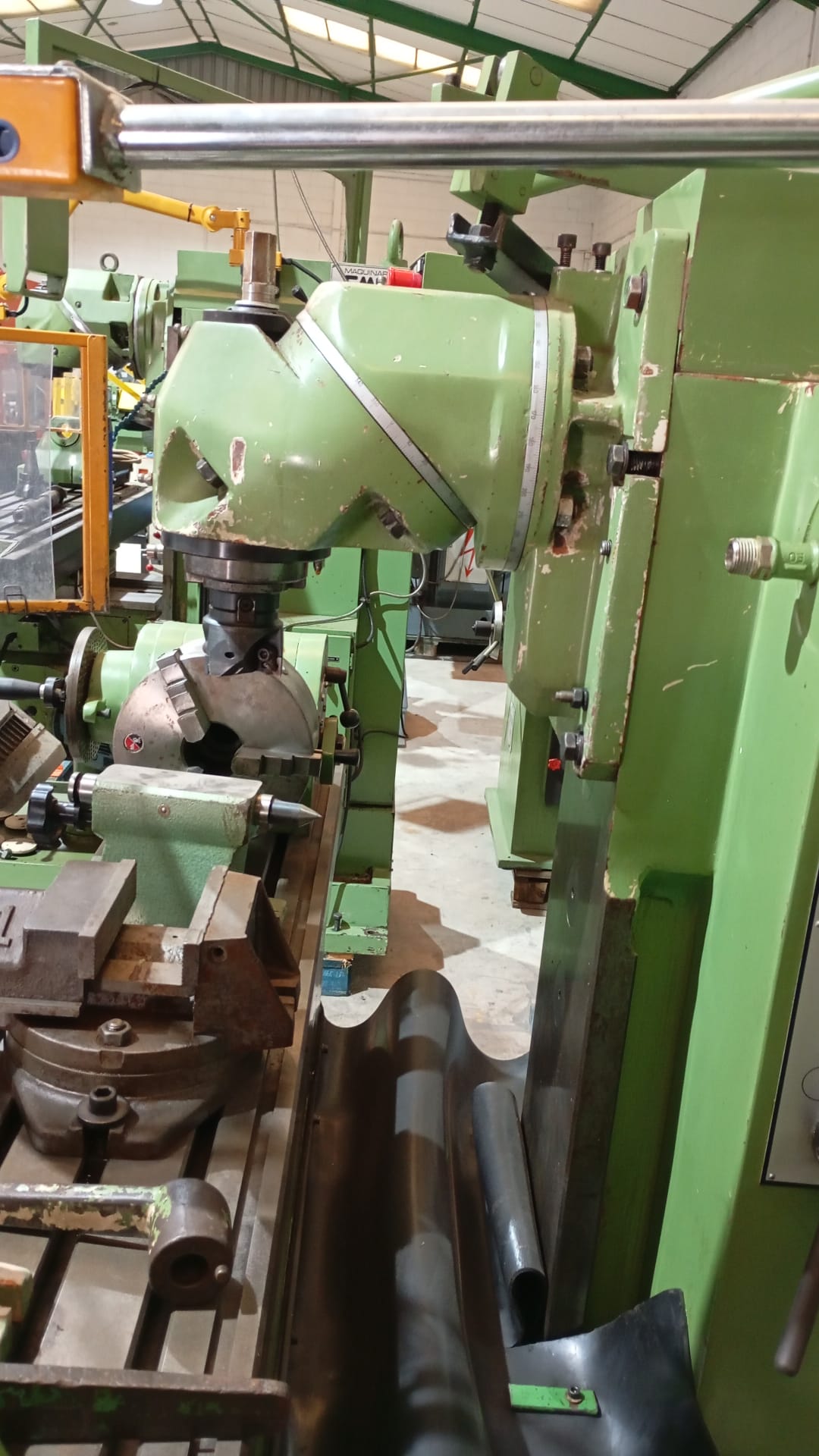Equipada con luneta, barra portafresas ,mordaza y plato divisor