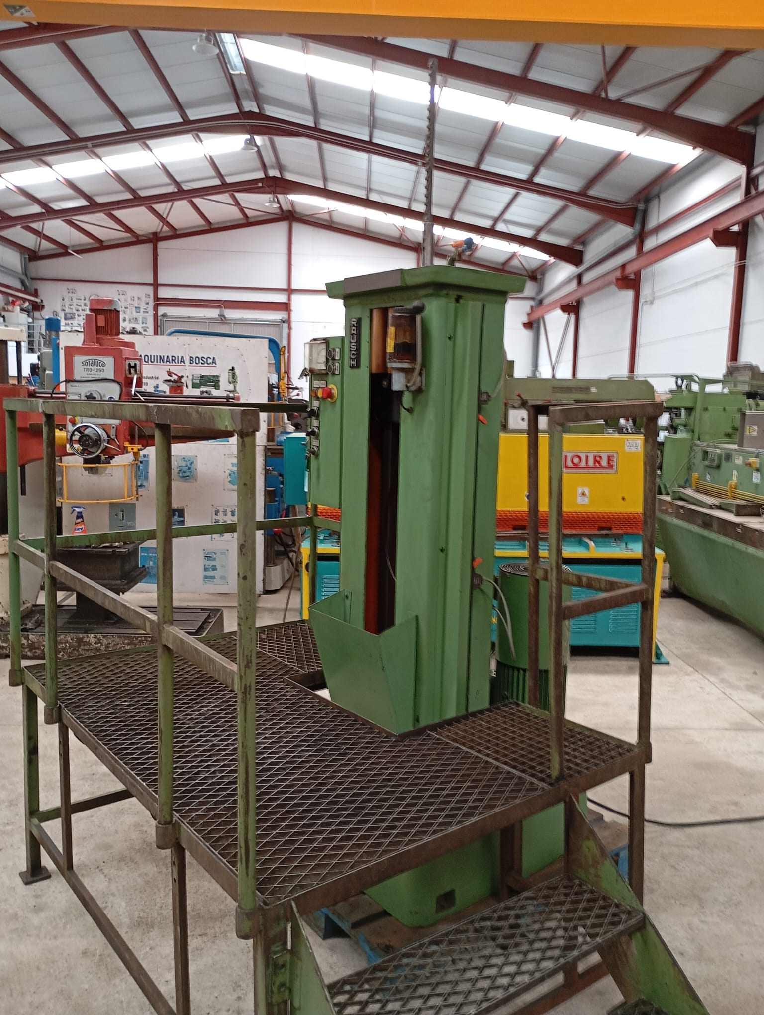Maquina en perfecto estado y con tarima para facil manejo del operario.