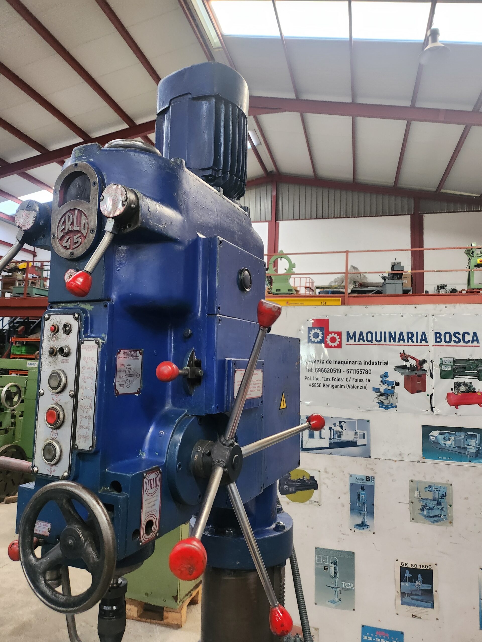 Taladro de columna ERLO 45 Transmisión por engranajes. Capacidad de broca: 45mm Avance automatico y bomba de taladrina.