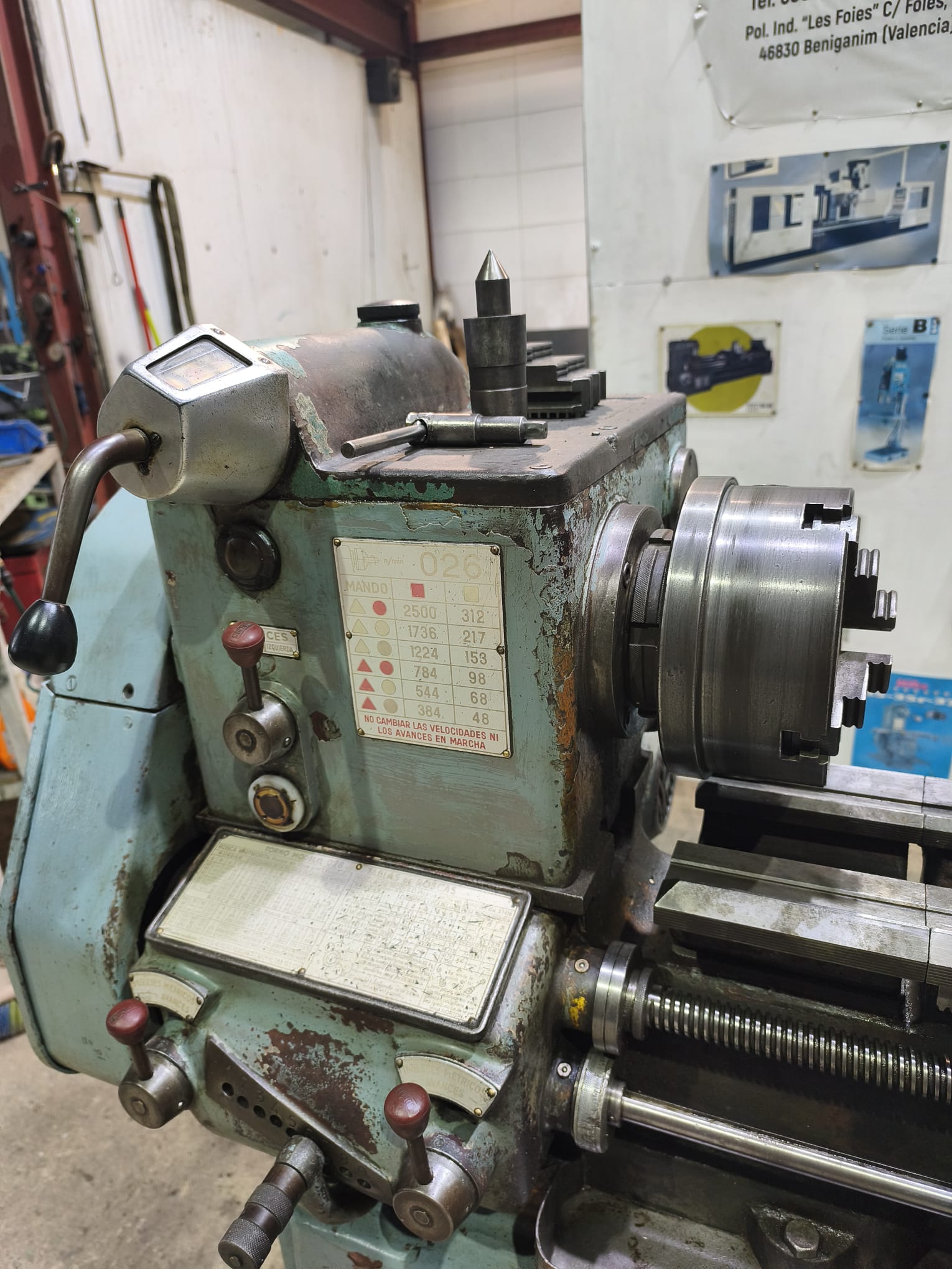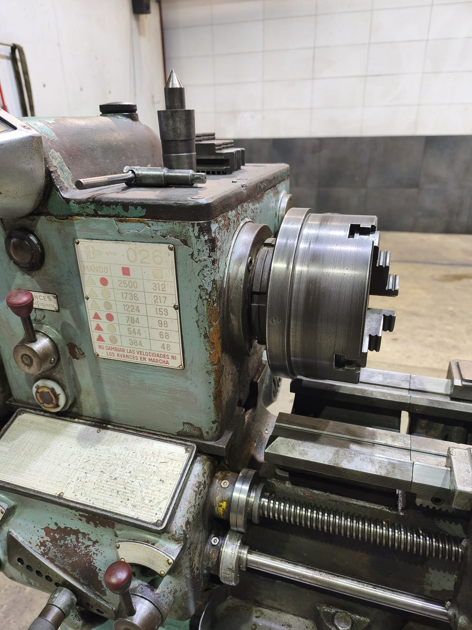 Torno cumbre 026. Distancia entre puntos 750 mm. Diámetro sobre bancada: 320 mm. Recorrido transversal del carro: 200 mm., Cono del contrapunto. MT3, 9 Velocidades de 45-1800 rpm. ,paso de barra: 28 mm., motor:2 Hp., Tension 380v