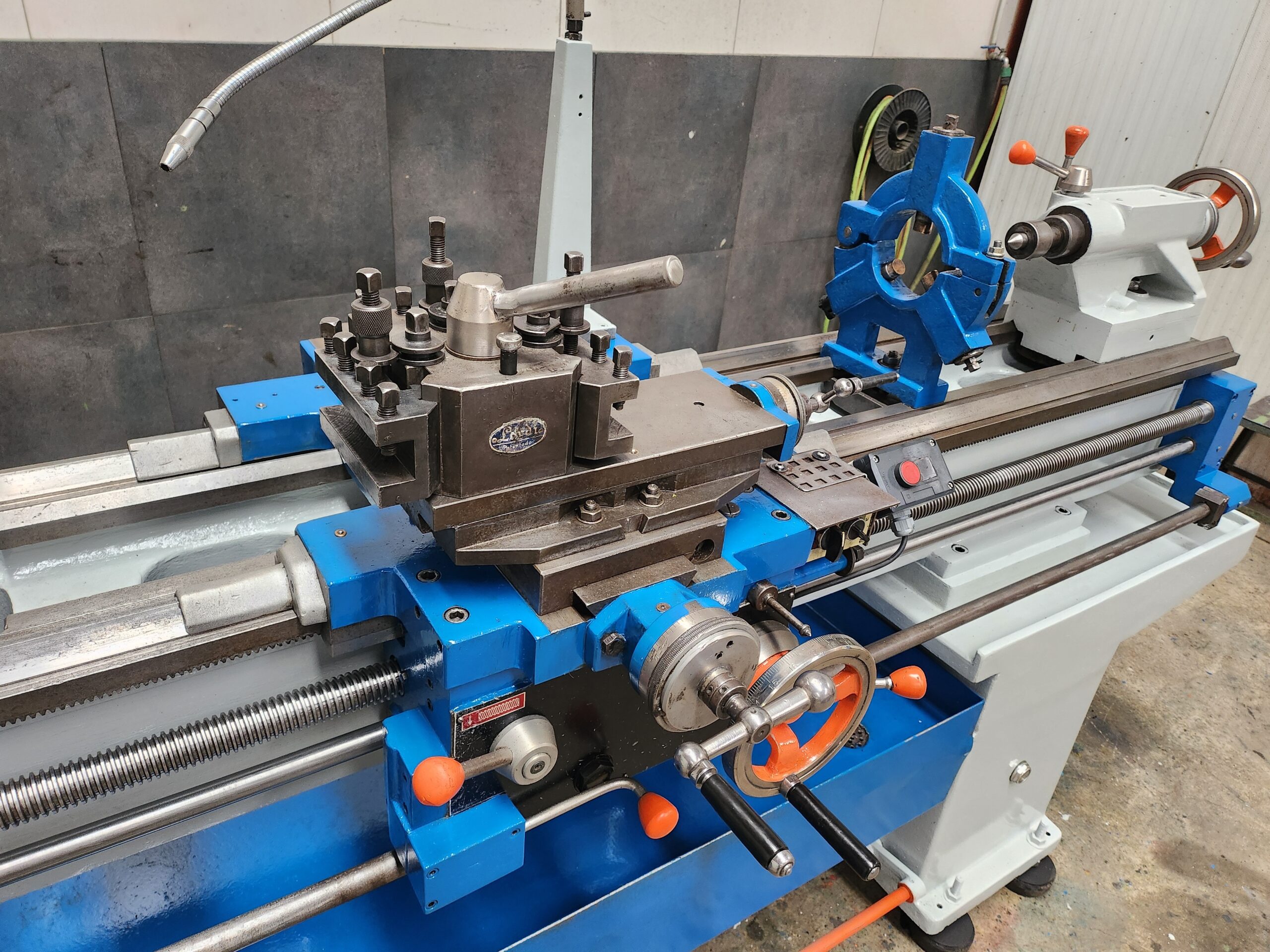 Equipado con torreta de cambio rapido, freno de pedal, bomba de taladrina y luneta fija.