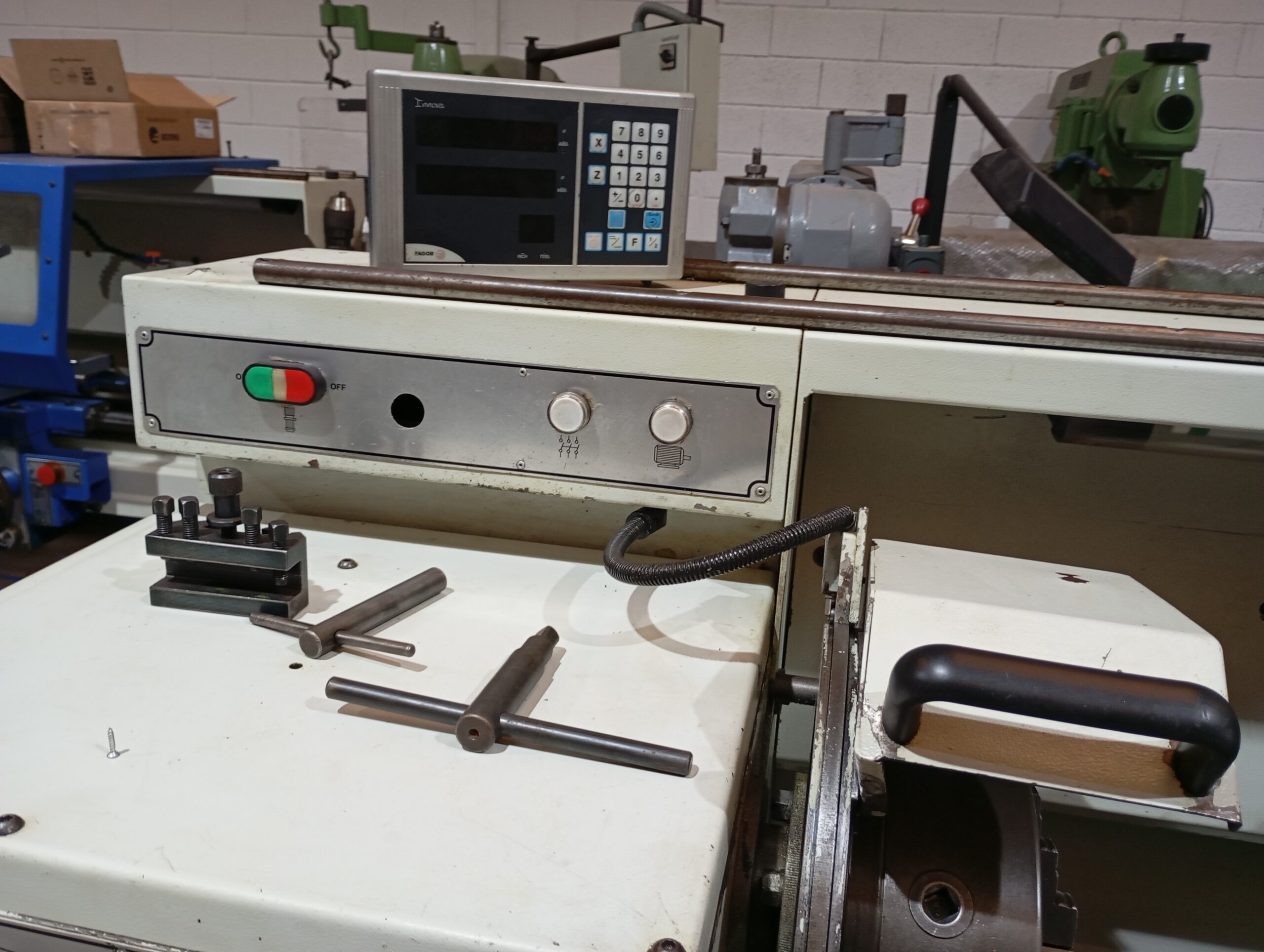 Equipado con torreta de cambio rapido, visualizador de cotas fagor a 2 ejes, freno de pedal y bomba de taladrina.
