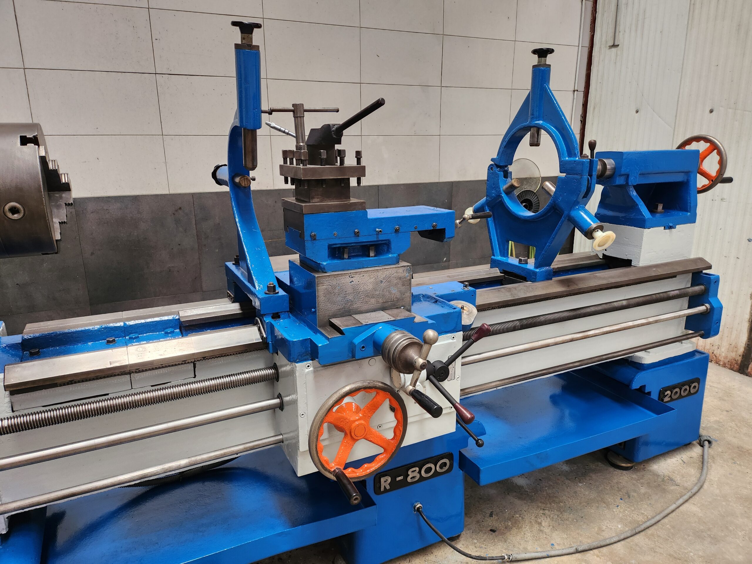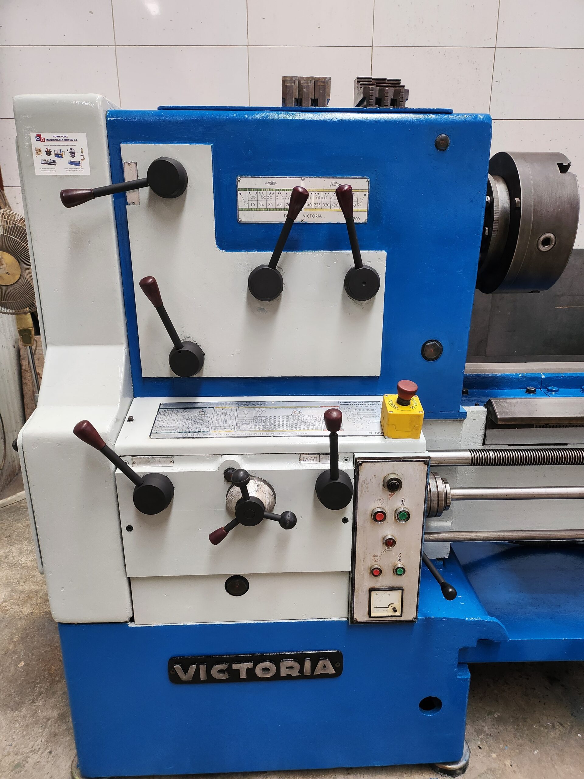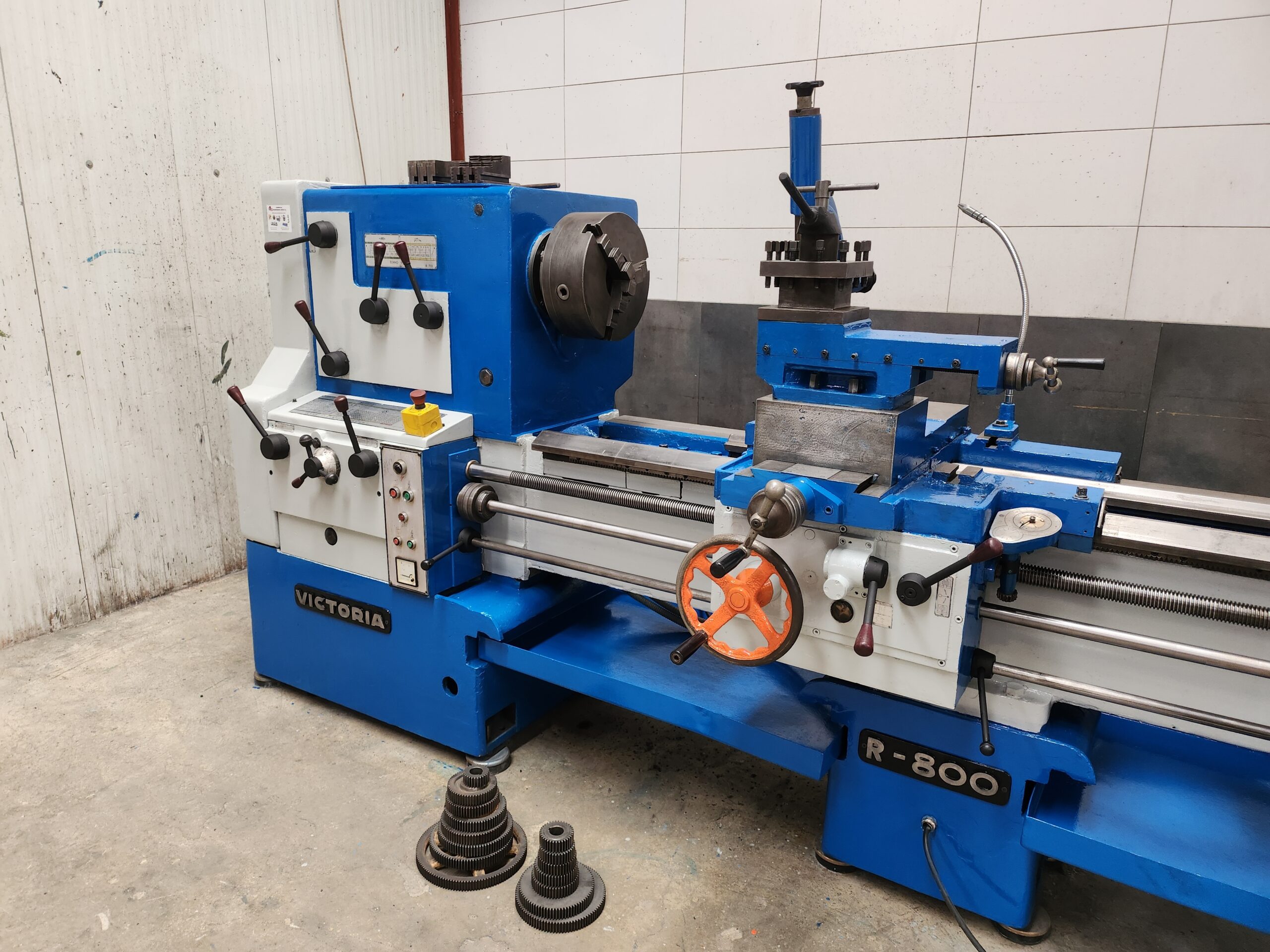 Torno paralelo marca Vitoria Mod. R-800. Distancia entre puntos: 2.000mm Volteo sobre bancada: 800mm Agujero de la caña: 72mm Equipado con 2 lunetas , bomba de taladrina, seta de emergencia y juego de piñones para roscar. En buen estado general.